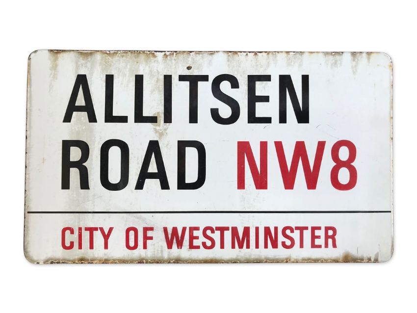 An enamelled iron street sign for Allitsen Road NW8, City of Westminster