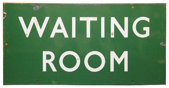 A BR(S) enamel sign displaying 'WAITING ROOM',