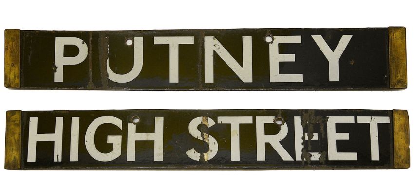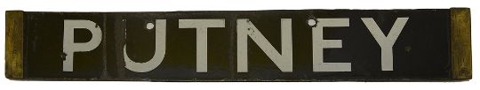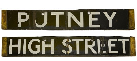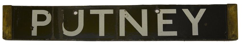 A London Underground Q Stock enamel cab destination plate for PUTNEY / HIGH STREET,