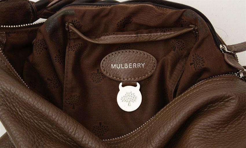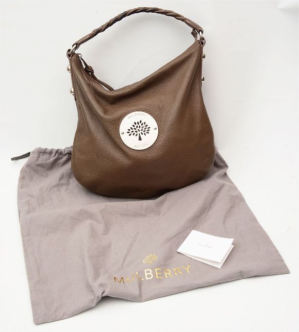 with plaited shoulder strap, oversized studs to side, large signature Mulberry logo plaque to centre, logo lined interior with zipped pocket, together with original outer dust bag