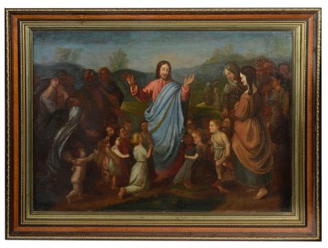 Condition: Relined. Small areas of over paint to bottom and top right hand corners round edges. Some flaking and a small loss mainly to centre of canvas