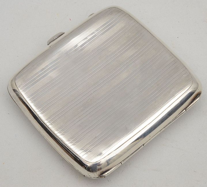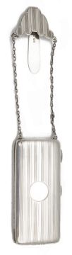 Condition: Both pieces are in good condition commensurate with age, with no major dents, there is a slight gap on one edge of the cigarette case when closed, both open and shut smoothly, makers mark partially rubbed on chatelaine case