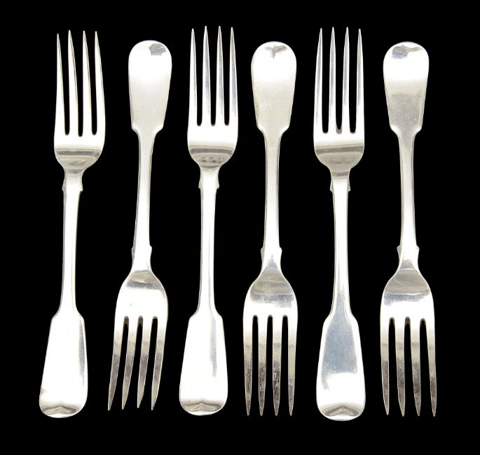 A set of six George IV fiddle pattern table forks