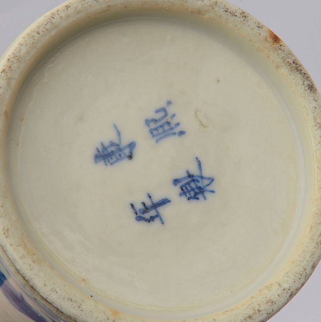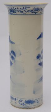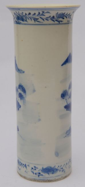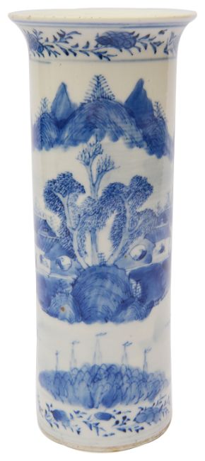 painted with a mountainous watery landscape with trees and buildings, Kangxi four character mark