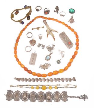 A butterscotch graduated amber bead necklace and various other jewellery