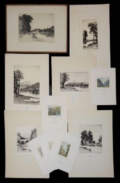 A group of coloured aquatints by Claude H. Rowbotham (British, 1864-1949) and group of etchings by John Fullwood (British, 1854-1931),