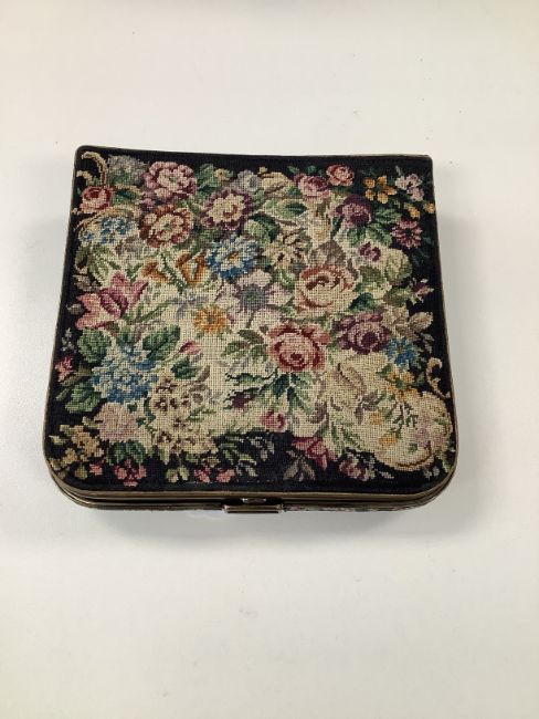 Condition: Ivory piano key frame of the nude has been repaired in several places with traces of super glue. reverse is covered in masking tape. Sections of the frame have bowed and ivory has. hairlines. Some loss to blue enamel on t he interior of the lid. two ashtrays have dents to rims and small losses. Tarnish and rubbing to gilt frame of mirror. Printed board with scuffs and marks. Minaudiere lacking compact