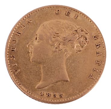 the reverse of the head of the young Victoria dated 1855, the obverse with a shield