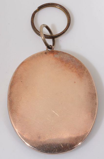 watercolour on ivory, the gentleman facing right wearing a light brown jacket, stock, white waistcoat , powdered wig en queue, initialled IB and dated 1779, contained within a gold frame with suspension loop