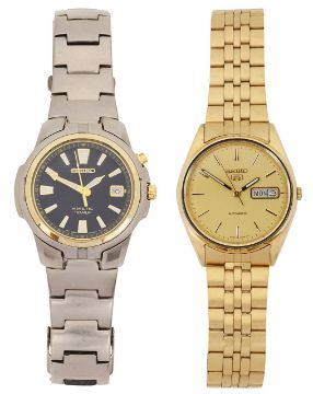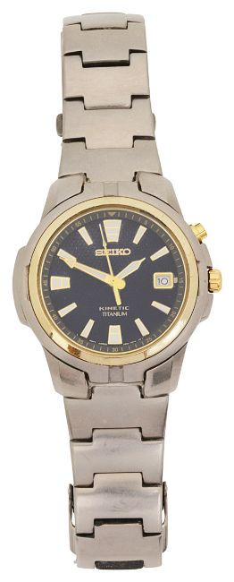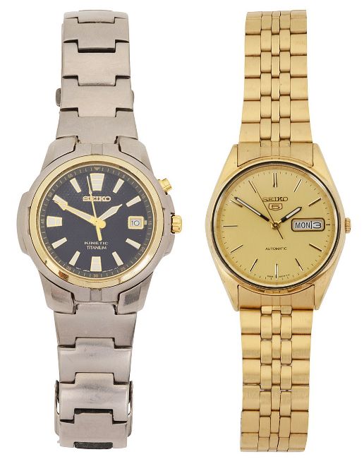 A Seiko Kinetic Titanium stainless steel wristwatch and a Seiko 5 gold plated date just wristwatch