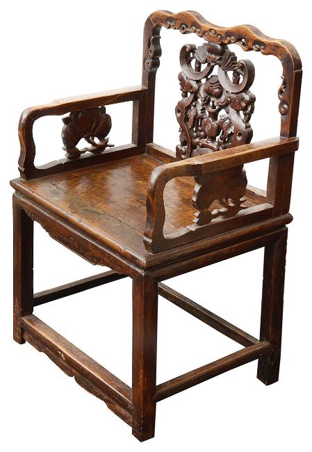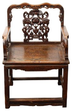 A 19th century Chinese carved hardwood open armchair
