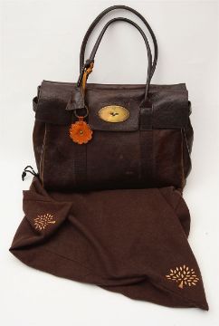 with postman's lock closure, dual rolled handles, the interior with a zipped pocket and two pockets, with dust bag and additional Mulberry orange leather tag