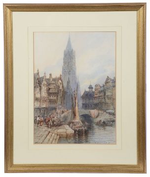 'France, Saint Omer', watercolour on paper, signed lower right, framed and glazed,