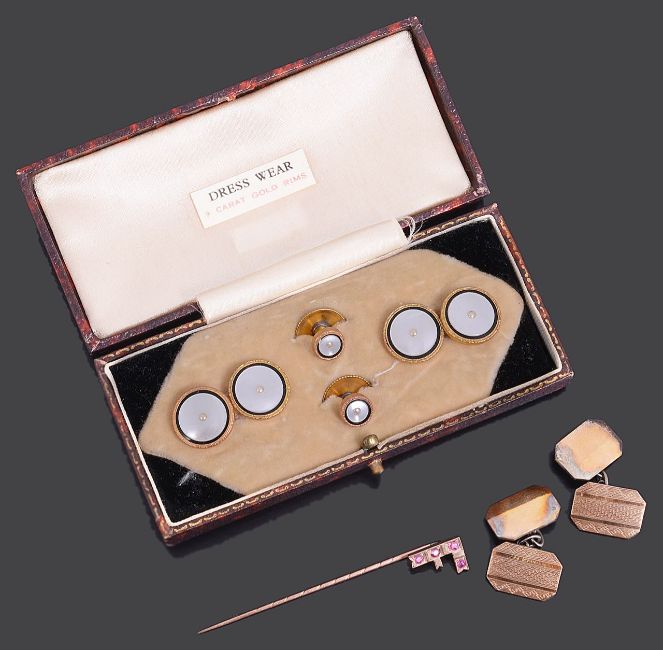 An Art Deco cased set of cufflinks and studs