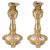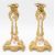 Condition: Some rubbing to ormolu. One drip pan is attached stuck to nozzle which lifts off stem. The thread of the rod to the centre does not bite with the nozzle. The drip pan of the other candlestick is missing a section of one scroll on the corners and has wear and scratches