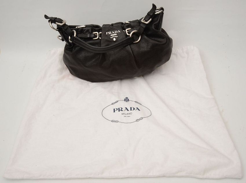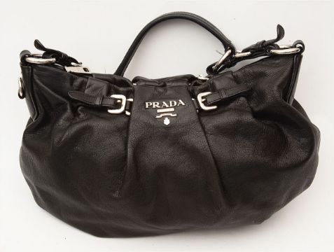 A Prada Vitello Daino Hobo black leather shoulder bag