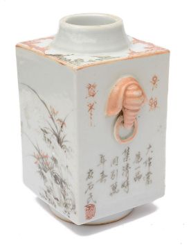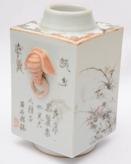 with twin elephant ring handles, painted with poetic calligraphy, vases of flowers and bamboo and flowers, red seal marks