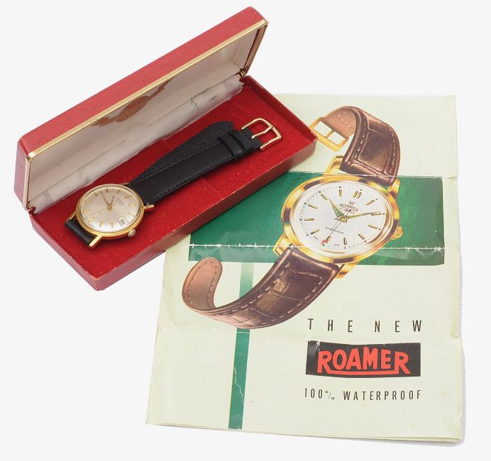 A Gentleman's Roamer Rotodate 44 automatic gold plated wristwatch