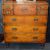 in two sections, having a central secretaire drawer with fitted interior flanked to either side with two short drawers above three long drawers, on turned feet and shepherd casters