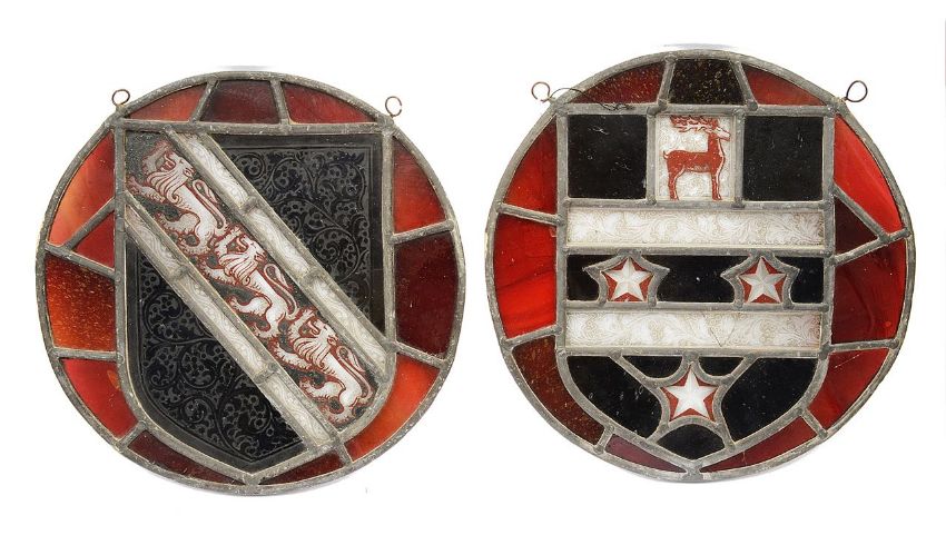 Two armorial leaded stained glass roundels c.1900