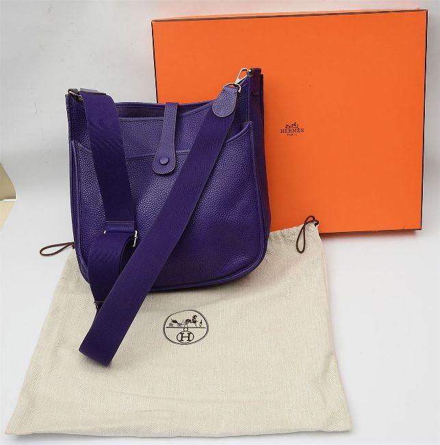 An Hermes purple Clemence Evelyne cross body bag