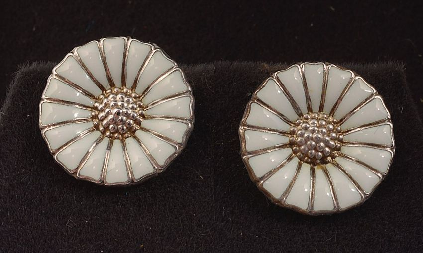 A Georg Jensen silver and enamel daisy bracelet and matching earrings
