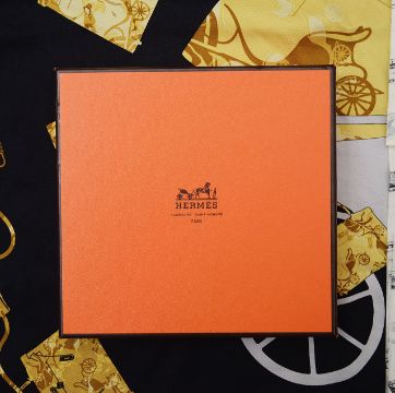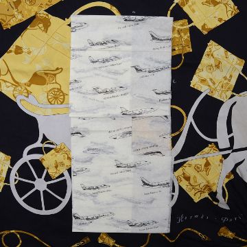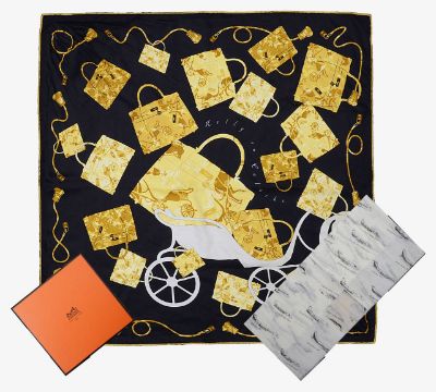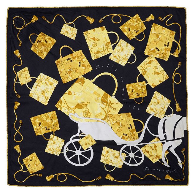 designed by Cyrille Diaktine in 2007, with printed pattern depicting the iconic Kelly bag against a black ground , in original box with printed aeronautical printed tissue paper