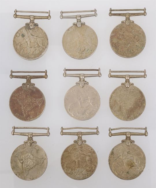 variously engraved to include a two medal group for 12942 JEMDR. ASIRVADAM, MADRAS S..& M, others engraved for GP.188164. W/WTR S.S. ANTHONY, I.A.M.C, ME/155832 CFN. I.S.ANNAMALAI, I.E. *, and 57374 L-NK.EKAMBARA. BENGAL S. & M.GP. R. I.E., (9)