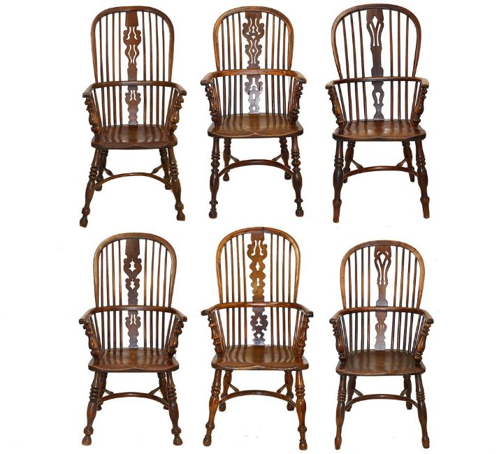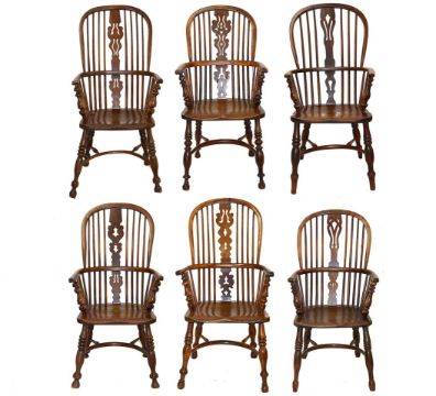 A harlequin set of six Windsor chairs,