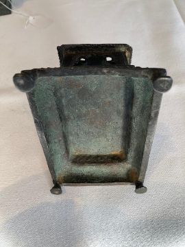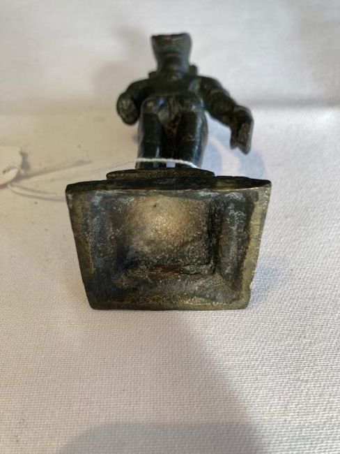 Condition: Figure is missing left forearm and hand. Otherwise fair condition commensurate with age. Figure with slightly different patination possibly associated with base