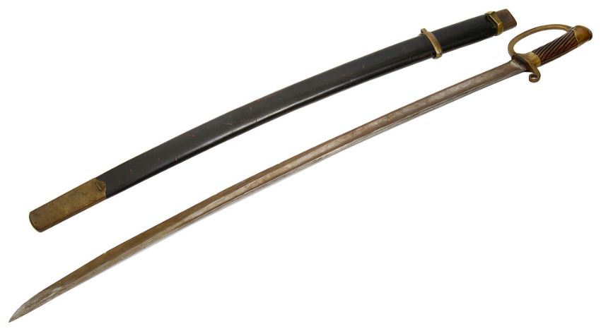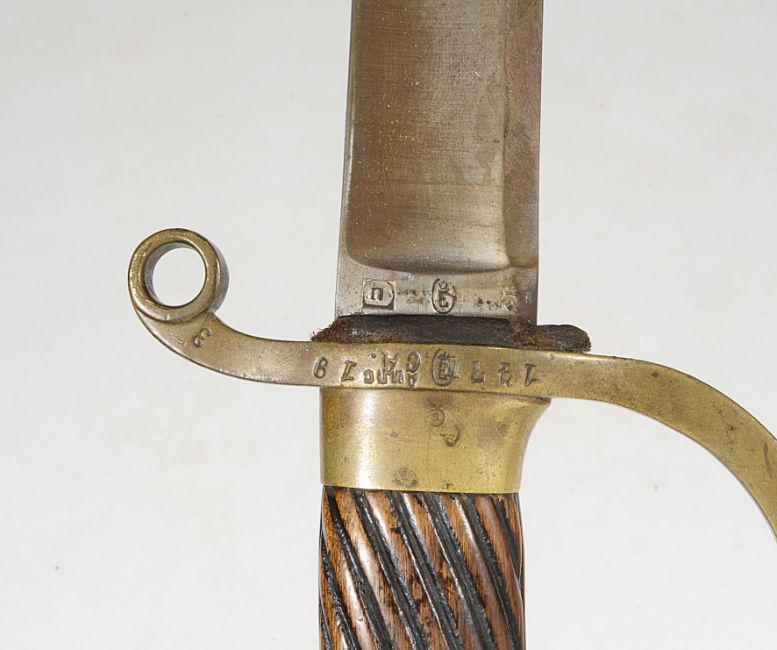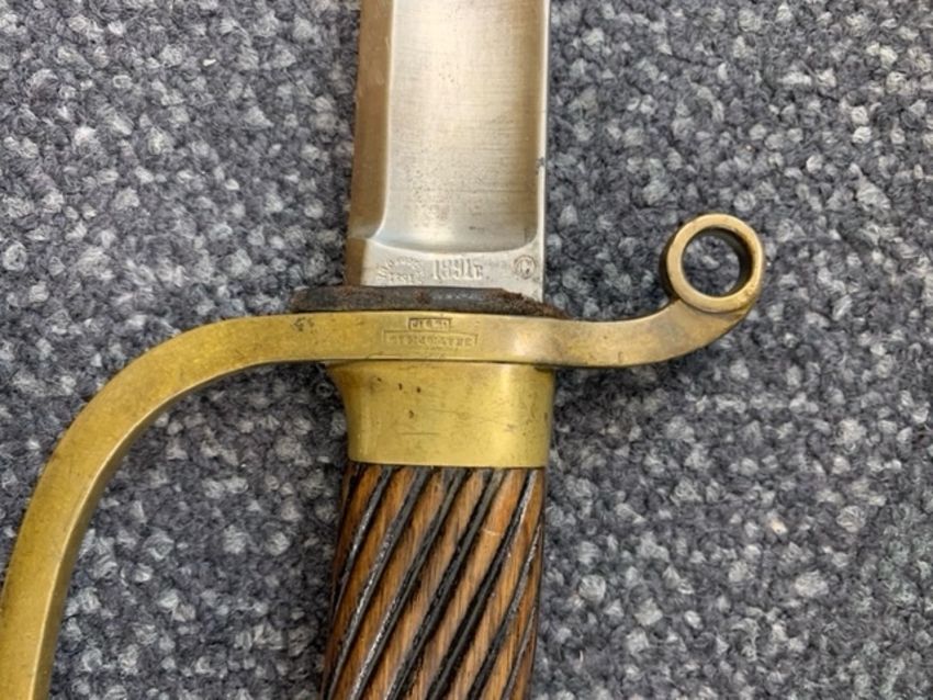 Condition: Lacking bayonet - worn condition - blade heavily worn, rusted with notches to edge. Hilt appears worn but overall good. The scabbard with wear and marks throughout, chapel with scratches and knocks, draws smoothly.