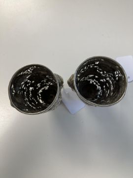 Condition: Split running around foot seam of one vase. The other vase leans slightly