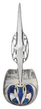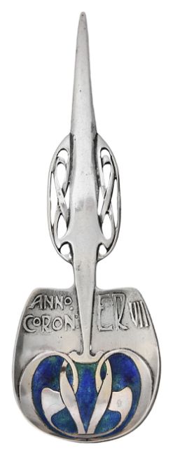 Liberty & Co., A Cymric silver and enamel Edward VII Coronation spoon designed by Archibald Knox