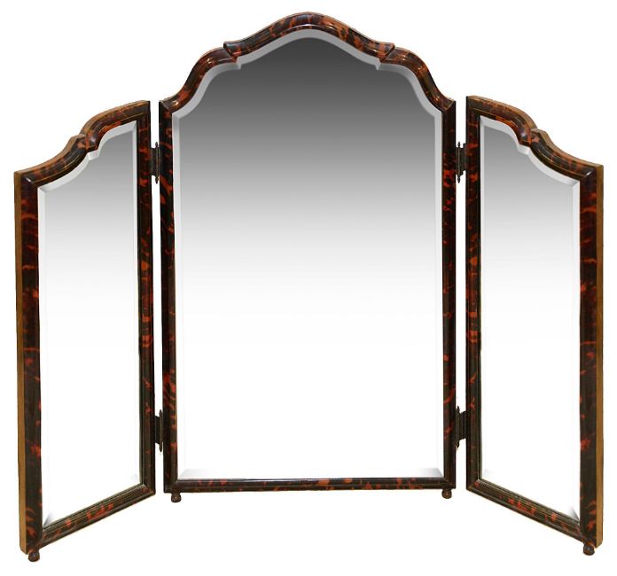 An early 20th century tortoiseshell triptych dressing table mirror,