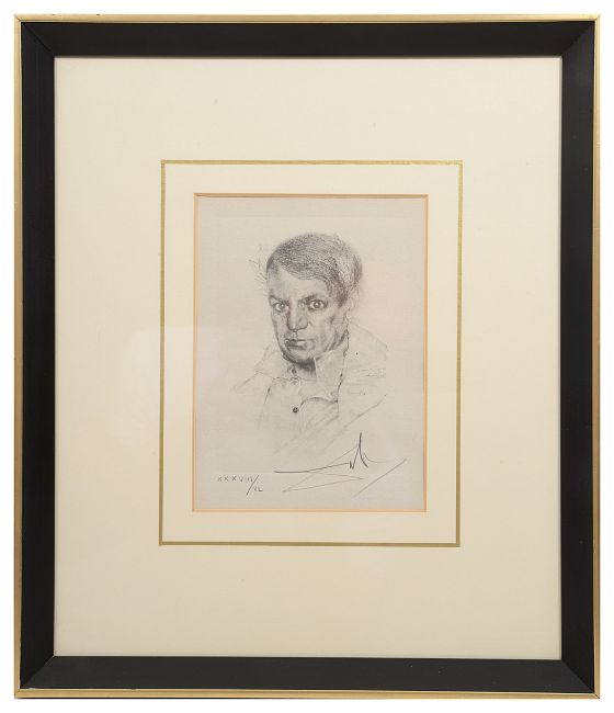 'Portrait of Pablo Picasso as Napoleon', inscribed ÔSalvador Dal’ Ge conu LÕEmpereur, Mantilla ErectaÕ, a print, numbered XXXVIII/XL and signed Dali in pencil, ,mounted framed