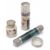 Three Victorian silver mounted scent bottles and a silver rouge pot