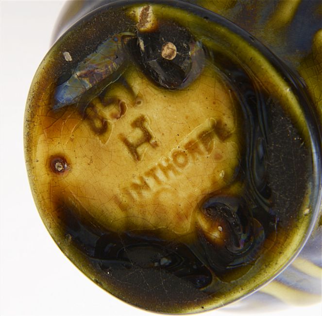 A small Linthorpe Pottery vase, designed by Dr. Christopher Dresser,