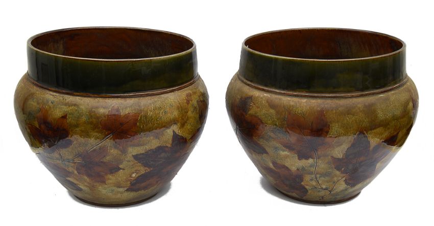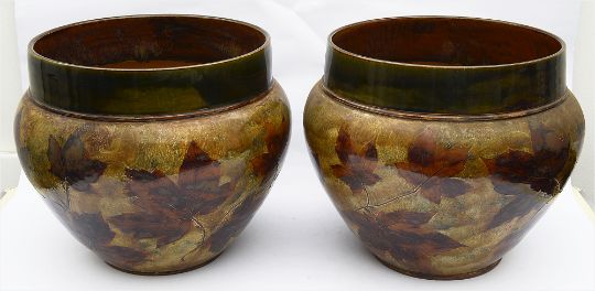 A pair of large Royal Doulton Autumn leaves pattern jardinieres