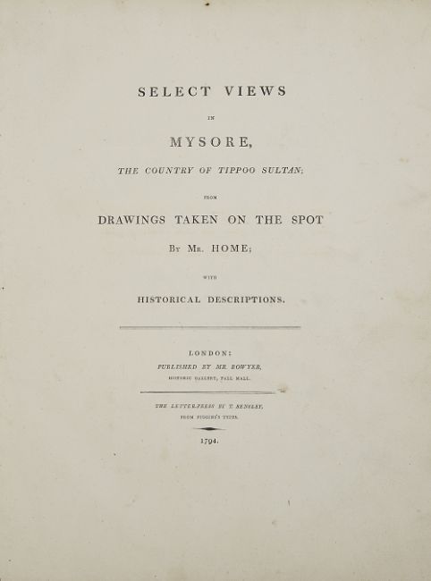 HOME, Robert, Select Views in Mysore, the Country of Tippoo Sultan,
