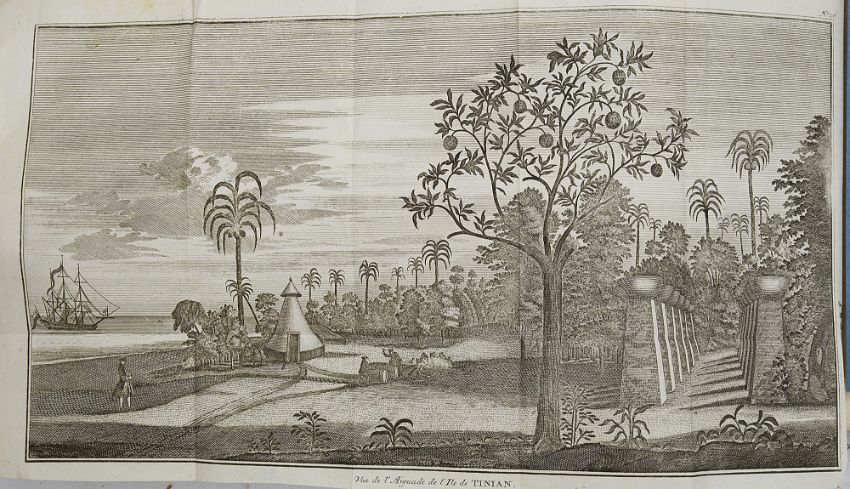 ANSON., George., WALTER, Richard, compiler. Voyage autour du monde, fait dans les anneŽs MDCCXL, I, II, III, IV.