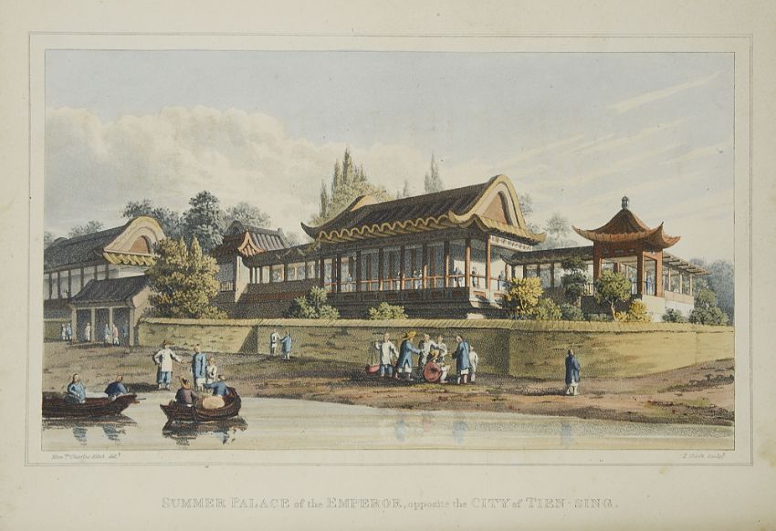 London, John Murray, 1817, engraved frontispiece portrait of Lord Amherst, engraved folding map, engraved map plate and seven hand coloured aquatints, 4to, bound in half brown calf with marbled paper boards, gilt title to spine, pp. 526