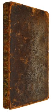 Condition: Edges of the boards are bumped and scuffed with losses to the corners, board hinges are beginning to crack, losses to top and bottom of spine, overall binding quite worn, foxing and stains to the pages and margins, tears to one of the plate causing the edge to protrude, folds to some pages,