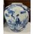 decorated with shaped panels painted with ladies and children in a garden setting against prunus flowers and cracked ice, four character mark, on a hardwood stand