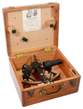 no 2252, 6.5" radius reading to 10", with certificate of examination dated 1962, with magnifier, vernier and interchangeable filters, contained in a teak carrying case