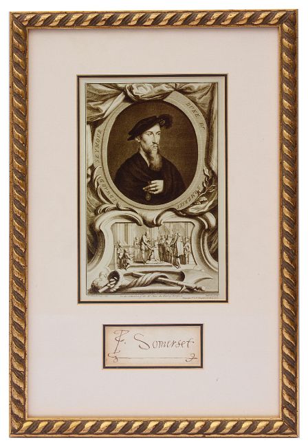 mounted below a facsimilie of a 1738 engraving of Seymour by Jacobus Houbraken, framed and glazed