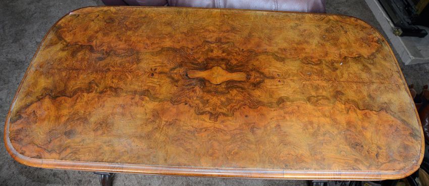 Condition: There is some lifting to the veneer on the table top edge, some scratches to top and uprights, condition is commensurate with age