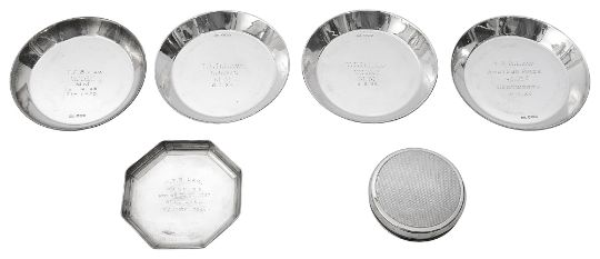 Five silver presentation ashtrays