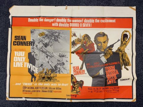 James Bond : A collection of movie memorabilia including; You Only Live Twice / From Russia With Love, United Artists, British Quad poster, 1970 release double bill; 007 James Bond In Focus, 1964 magazine; Live And Let Die, souvenir brochure; For Your Eyes Only, official souvenir brochure; Octopussy souvenir brochure; Moonraker souvenir brochure; Diamonds Are Forever souvenir brochure (7)