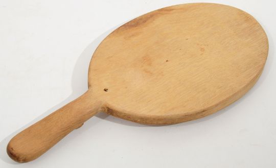 A Robert 'Mouseman' Thompson of Kilburn oval oak cheese board with handle