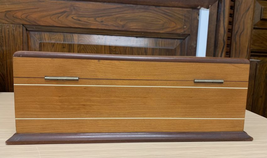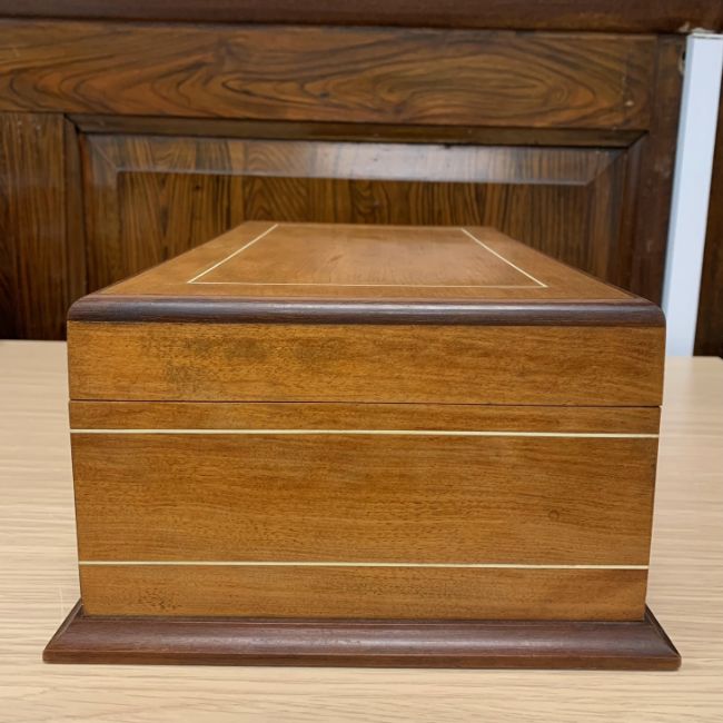 Condition: Faint ring mark to lid. Key present and lock in working order lid not quite sitting flush